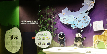中國保護大熊貓保護科普中心館內(nèi)運用了多點觸控查詢、投影互動沙盤、球幕互動投影、紗幕投影等多媒體技術(shù)生動立體的展示了臥龍大熊貓保護基地詳細情況和獲得的重大成就。