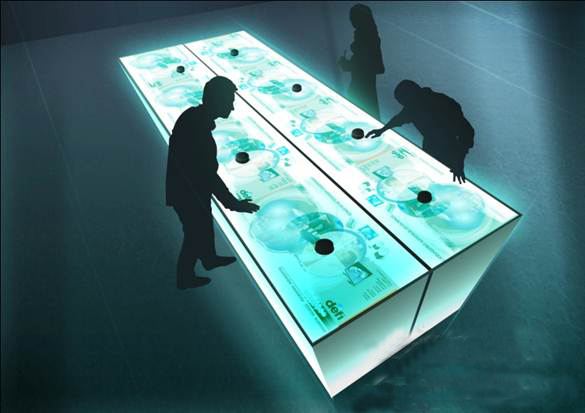 全息沙盤是沙盤的表現形式之一。是一種使用全息立體成像技術的高科技數字沙盤。3D圖像被全息玻璃光學反射并在空中立體成像,從而產生三維感和幻覺。