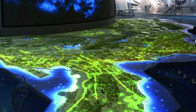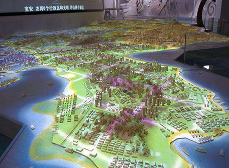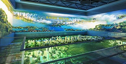 基于計算信息的沉浸式交互環境的三維虛擬仿真技術沙盤模型,折幕沙盤在傳統固態沙盤的基礎上,加入了以動態投影為主的各種多媒體聲光手段,將沙盤美好的一面展現得淋漓盡致。