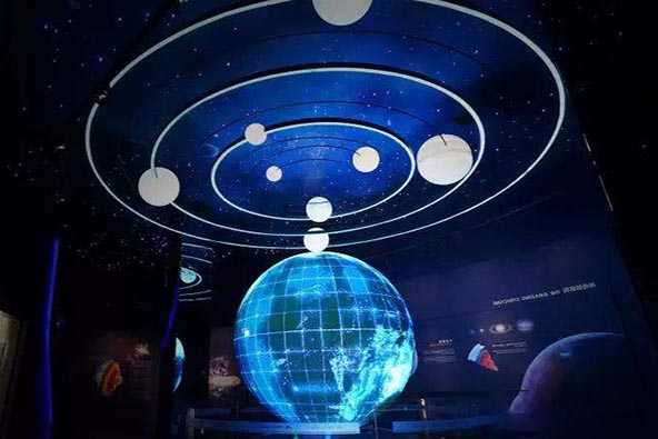 球幕投影是一種創意投影表現方式,這是一個非常魔幻的球體,利用在曲面上實現大尺寸圖像內容的無縫拼接技術,實現特殊曲面甚至球面的全景影像,給用戶先進的科技體驗,這種投射形式技術難,要求很高,屬于較為高端的投影技術。